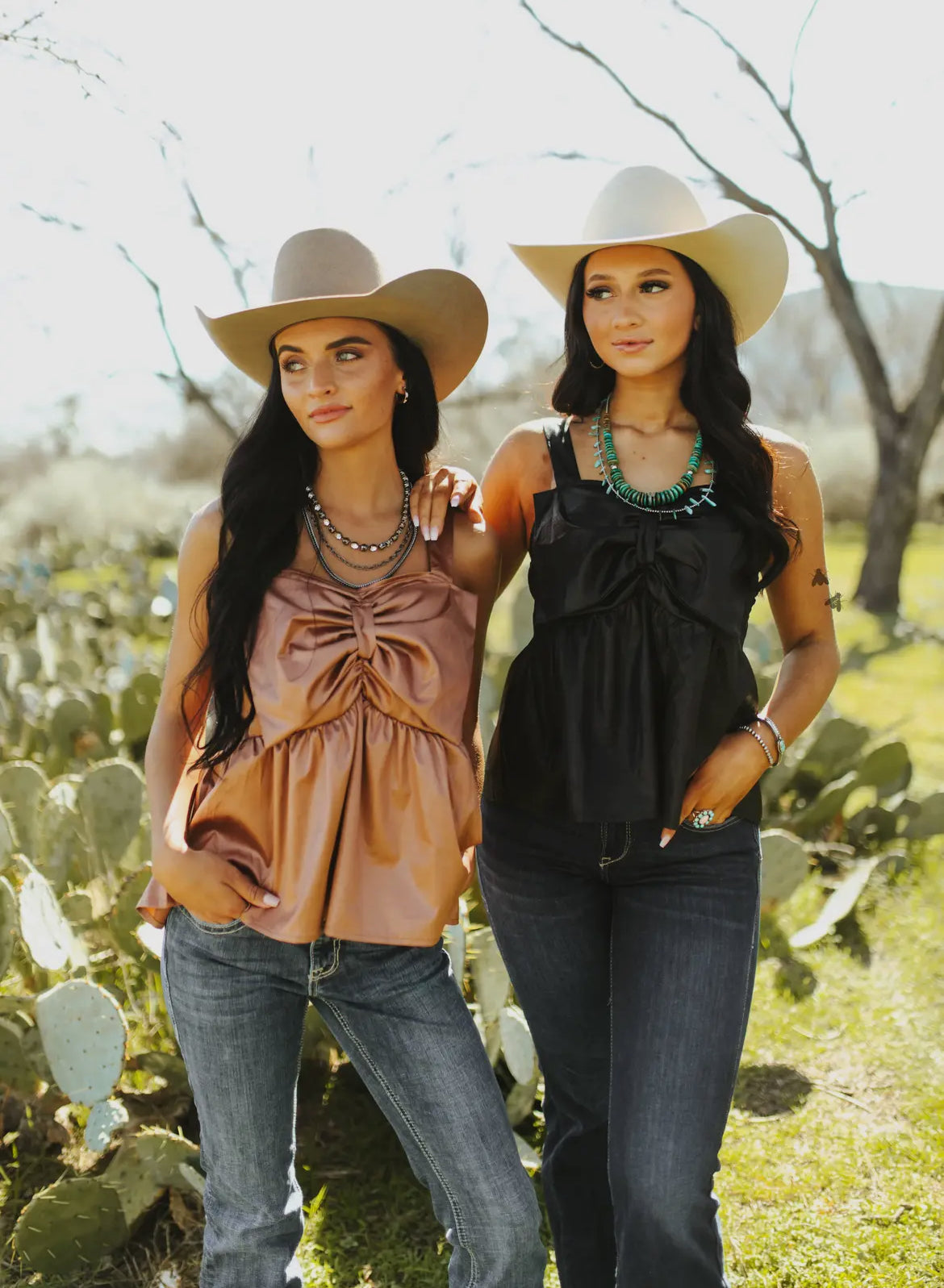 this tank top has the coolest bow detail and the fabric is SO GOOOD has a slight sheen to it BUT nothing crazyy.