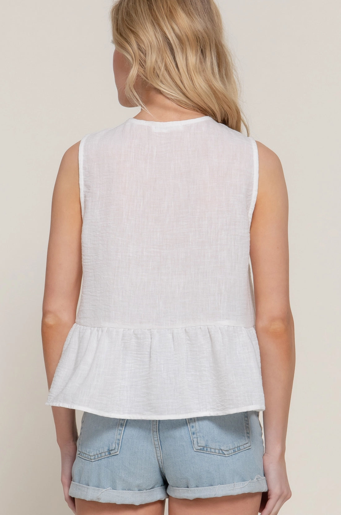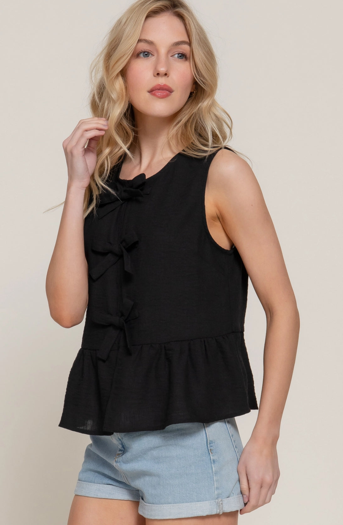 SLEEVELESS FRONT BOW TIE LINEN EFFECT TOP
