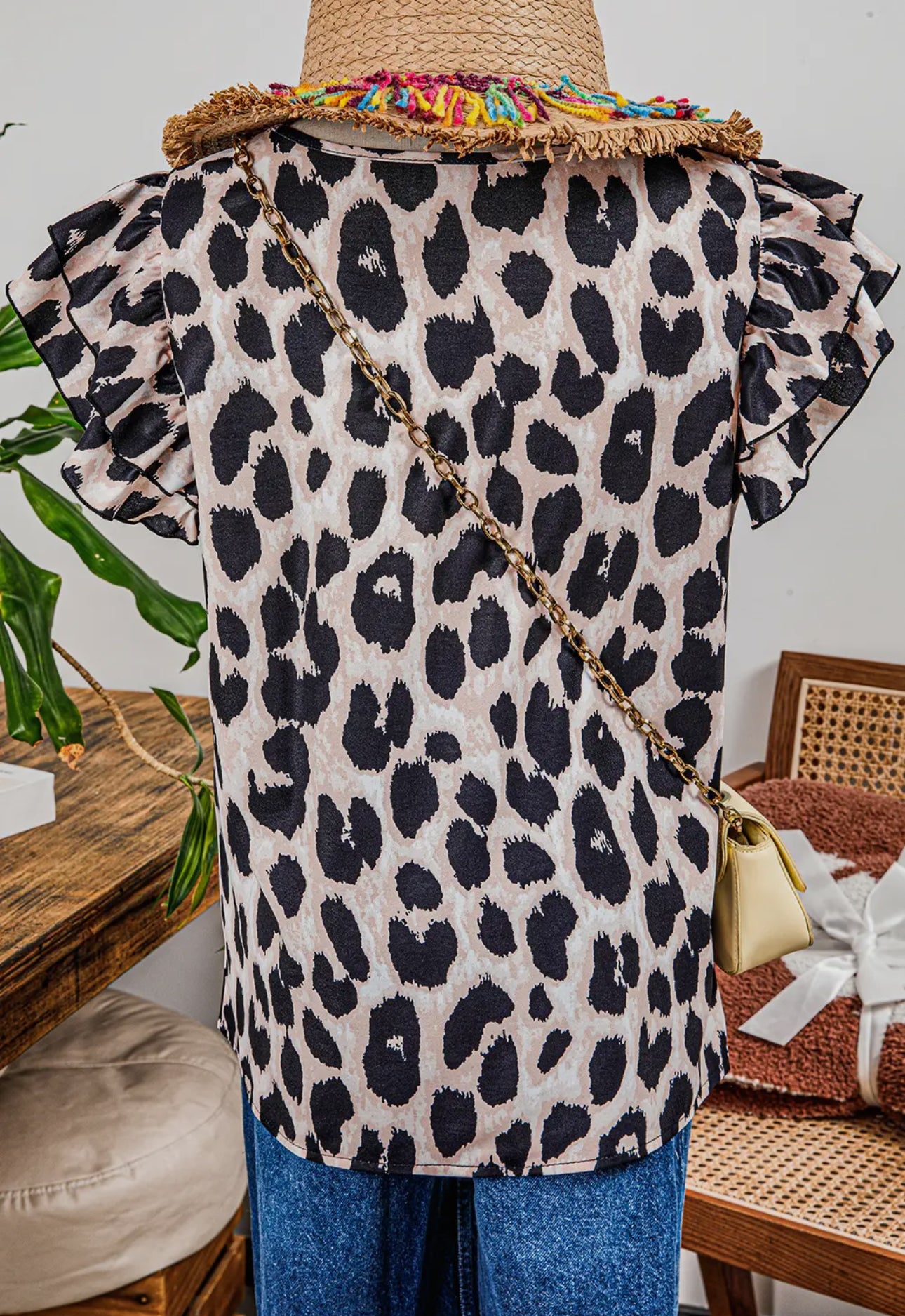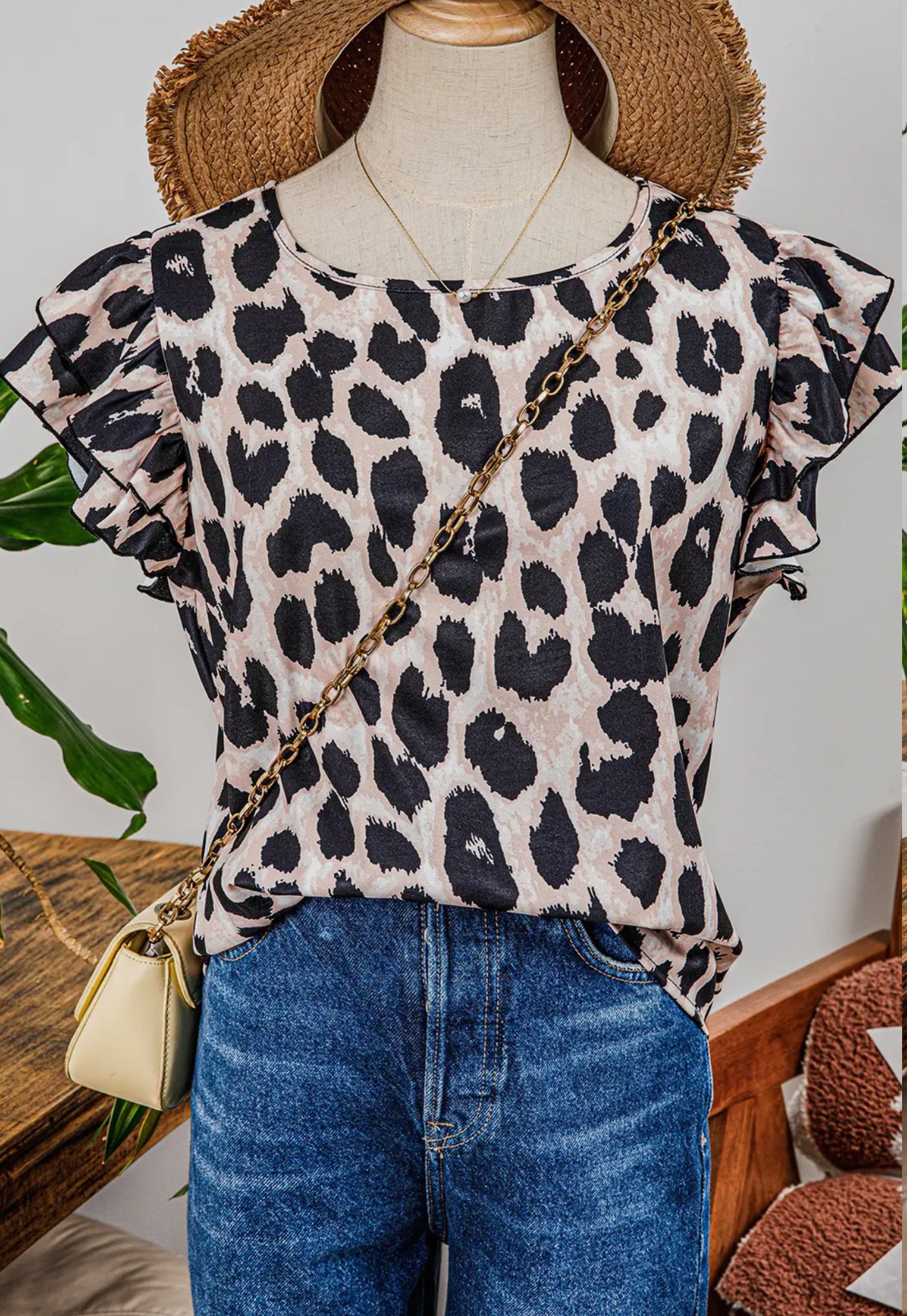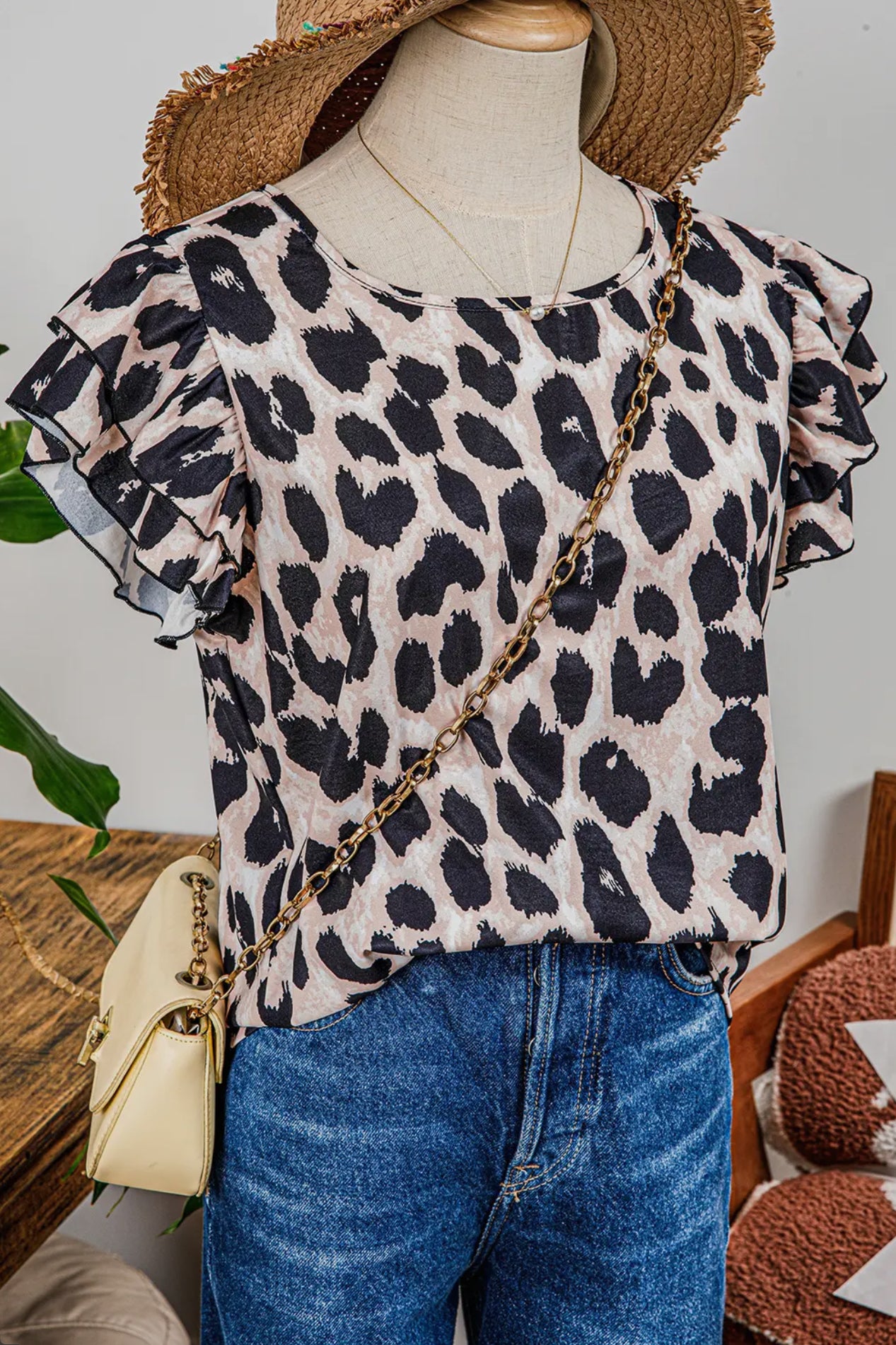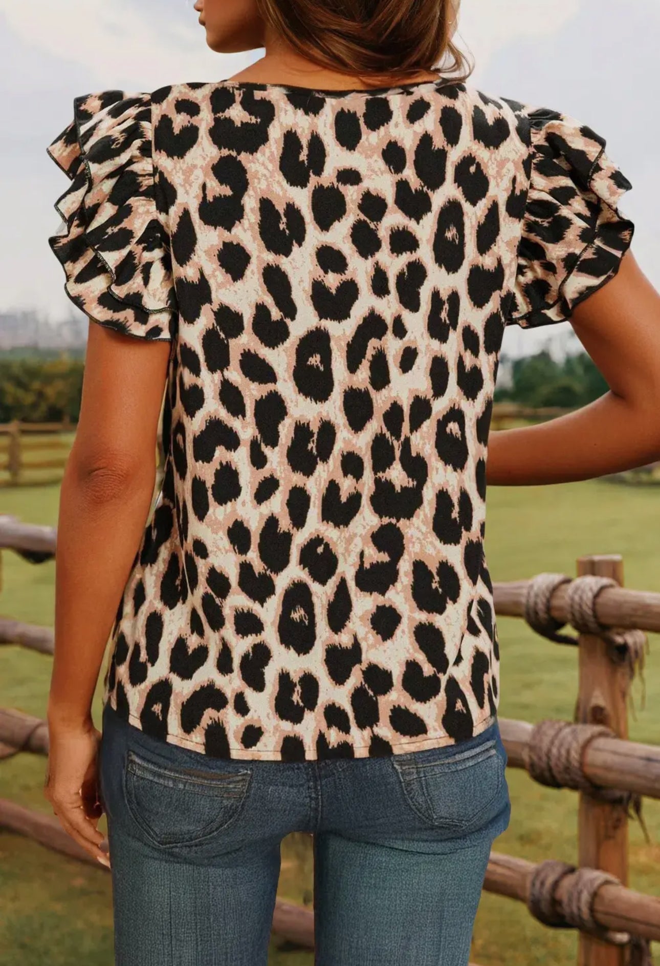 🌺Material: 100%Polyester 🌺Pattern: Leopard 🌺Neckline: Round Neck 🌺Sleeve: Short sleeve 🌺Details: Ruffle