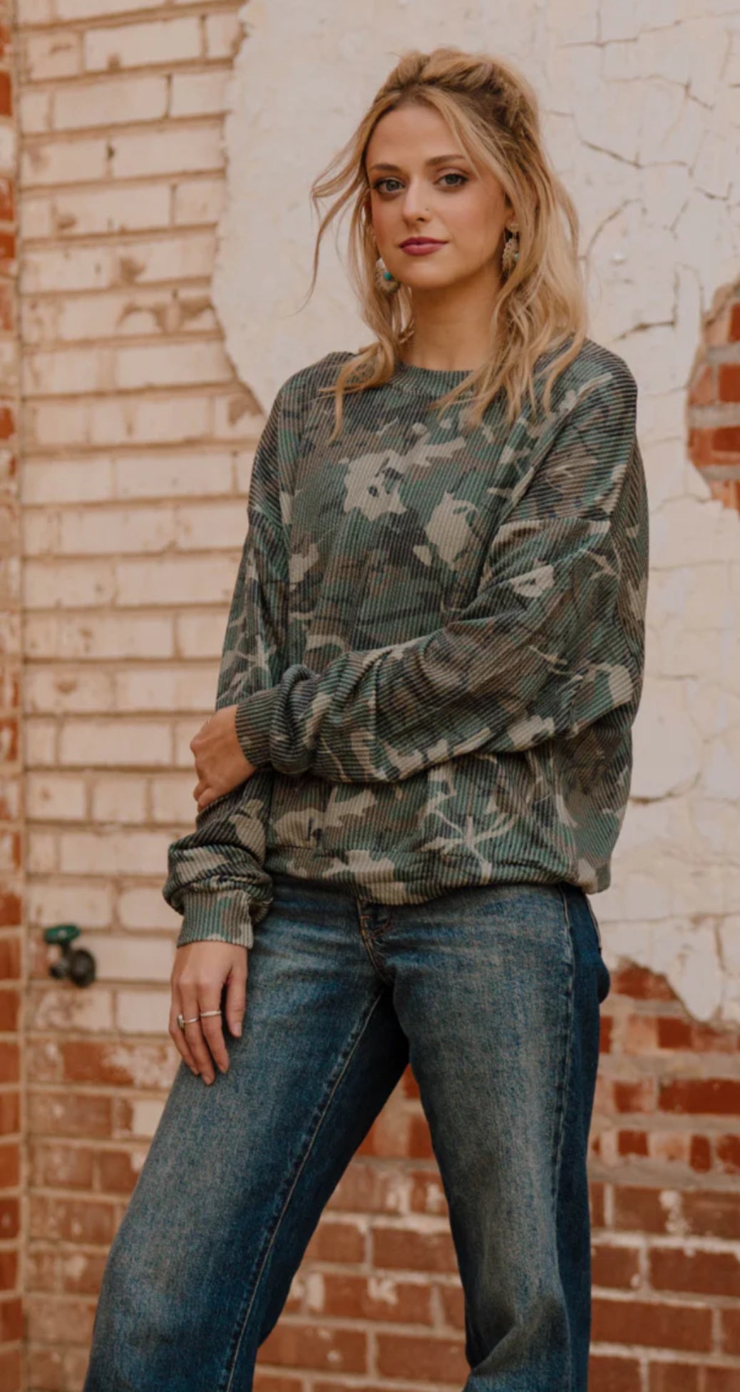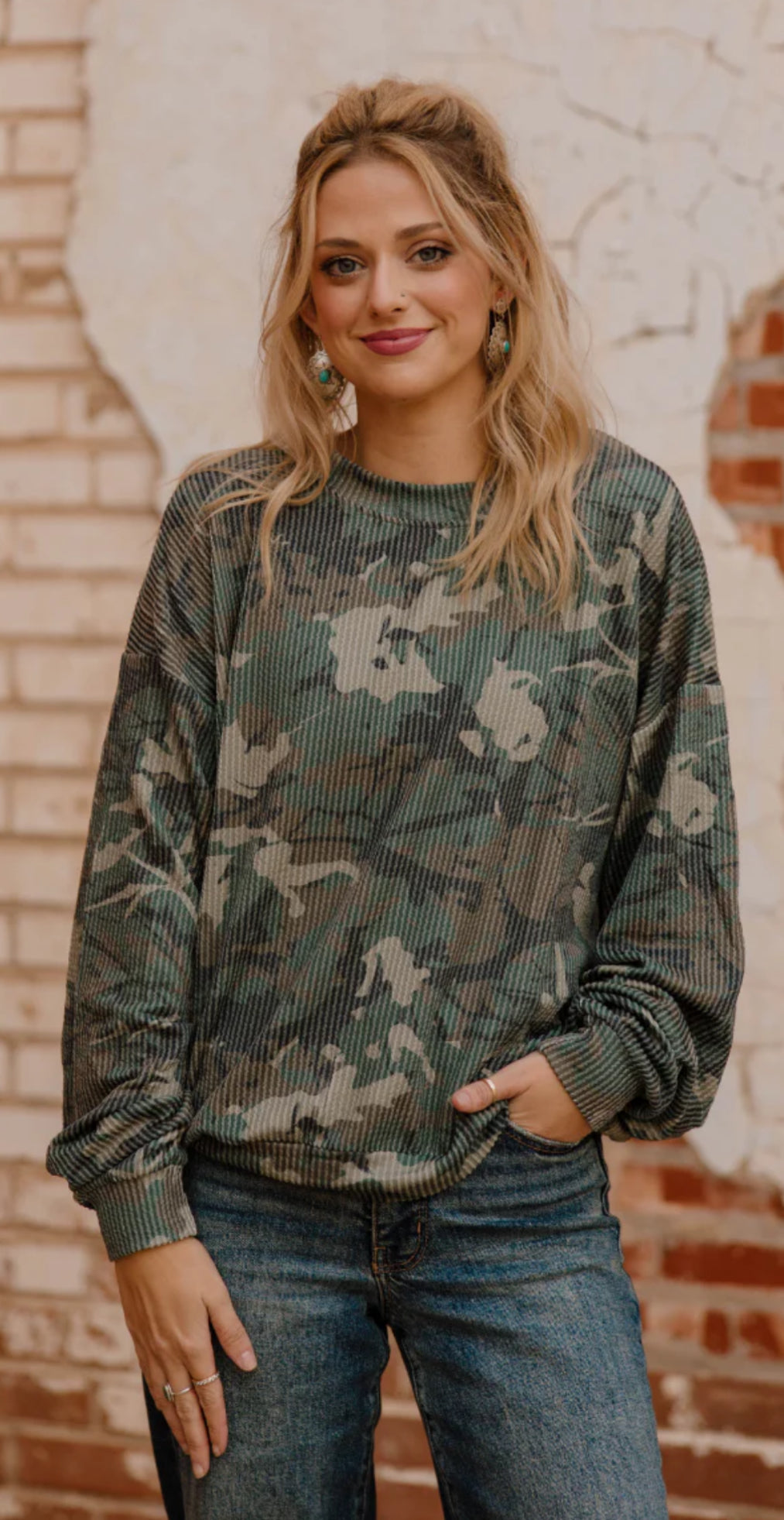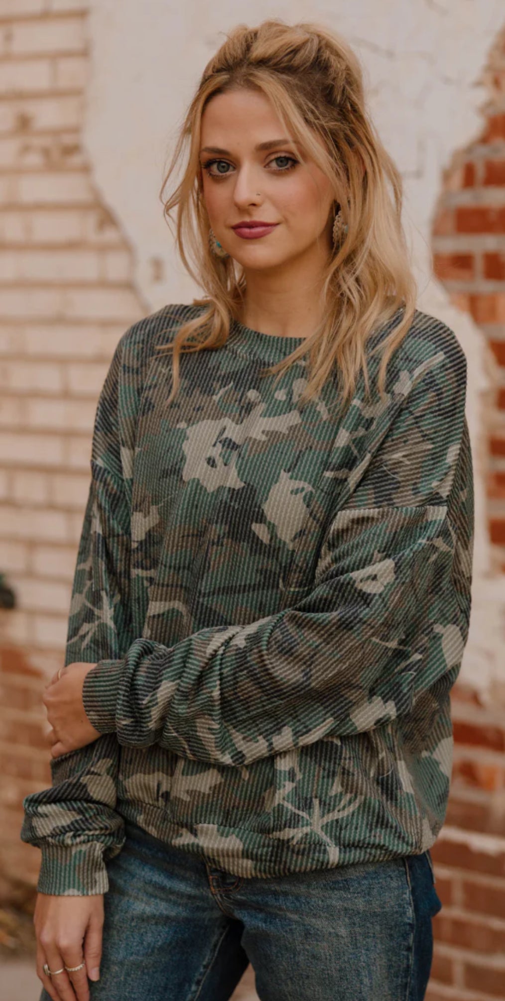 Elevate your wardrobe with the Camo Kreek Top, a perfect blend of style and comfort. Its long sleeves provide great coverage for cooler days, while the camo pattern adds a rugged, trendy edge. Made with soft, breathable fabric, this top ensures all-day comfort whether you're out on an adventure or running errands. Stand out effortlessly with a versatile piece designed to keep you looking sharp and feeling confident.