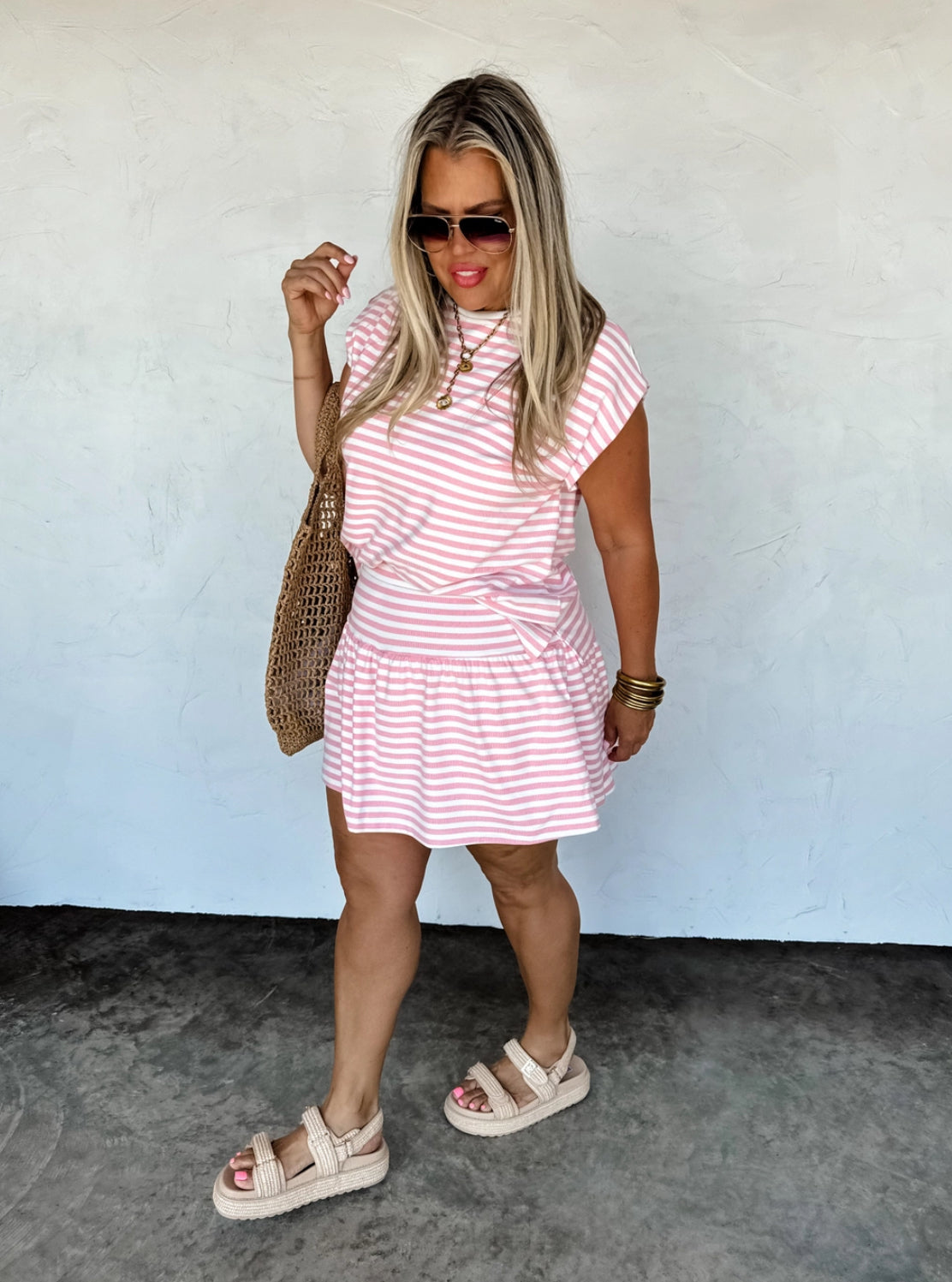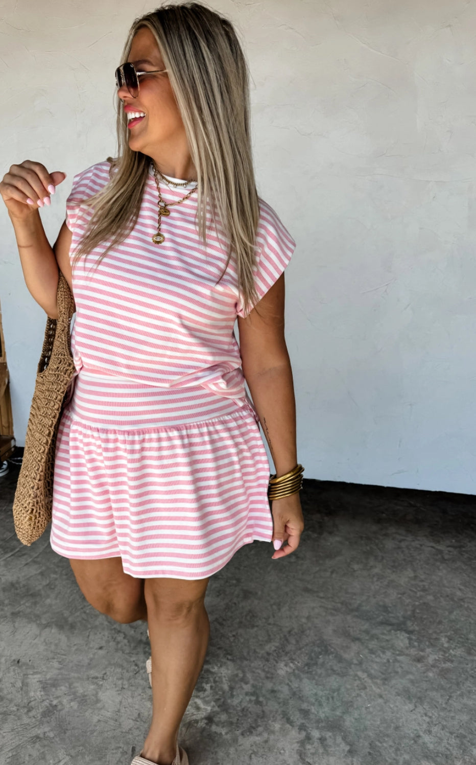 Coastal Stripes Skort Set - Pink
