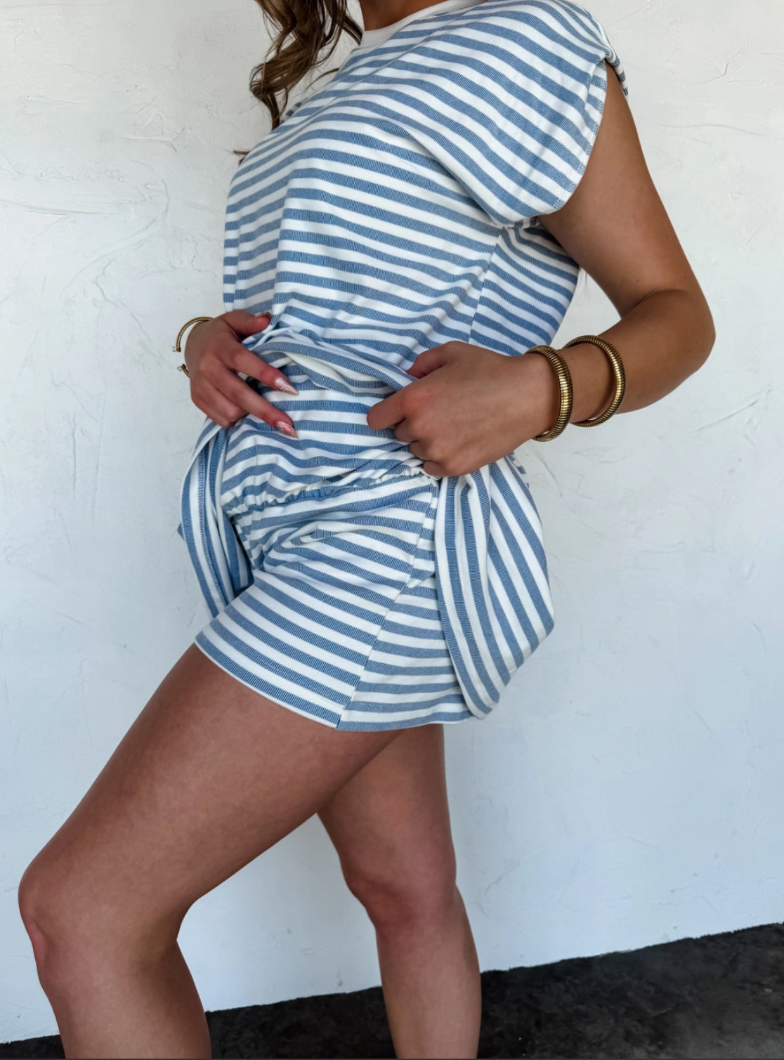 These Stripe Skort Sets are the ultimate blend of sporty and chic, designed for laid-back days with effortless style. Featuring a cute brushed fabric and a classic striped pattern, this set is as comfortable as it is stylish. Plus, it has pockets for added convenience!